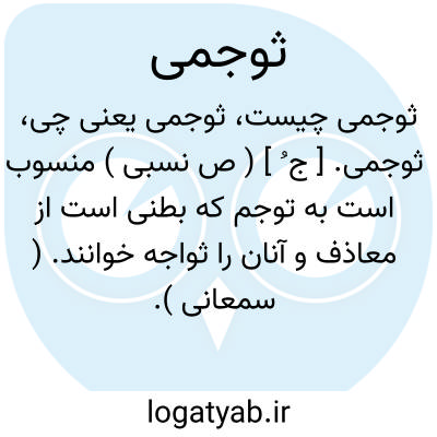 ثوجمی. [ ج ُ ] ( ص نسبی ) منسوب است به توجم که بطنی است از معاذف و آنان را ثواجه خوانند. ( سمعانی ).