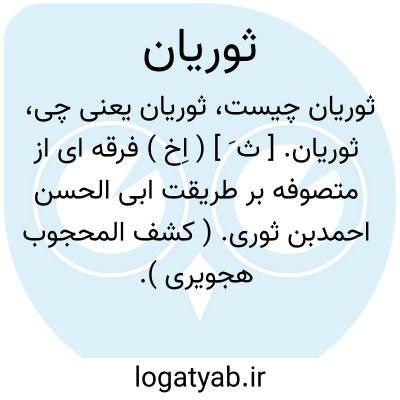 لغت نامه دهخدا ثوریان. [ ث َ ] ( اِخ ) فرقه ای از متصوفه بر طریقت ابی الحسن احمدبن ثوری. ( کشف المحجوب هجویری ).