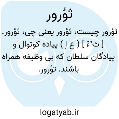 ثؤرور. [ ث ُءْ ] ( ع اِ ) پیاده کوتوال و پیادگان سلطان که بی وظیفه همراه باشند. تؤرور.
