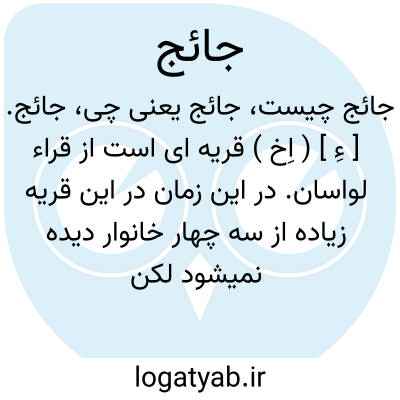 جائج. [ ءِ ] ( اِخ ) قریه ای است از قراء لواسان. در این زمان در این قریه زیاده از سه چهار خانوار دیده نمیشود لکن از خرابه و آثار چنین معلوم و مستفاد میگردد که جائج محل آباد معتبری بوده. امامزاده ای در جائج مدفون است موسوم بامام زاده عبداﷲ از اولاد حضرت امام موسی کاظم ( ع ). رود جاجرود منسوب به این آبادی بوده و اصلاً جائج رود است از کثرت استعمال جاجرود شده. ( مرآت البلدان ج 4 ص 9 ).