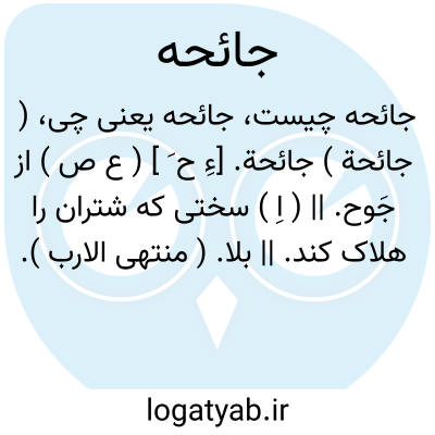 ( جائحة ) جائحة. [ءِ ح َ ] ( ع ص ) از جَوح. || ( اِ ) سختی که شتران را هلاک کند. || بلا. ( منتهی الارب ).