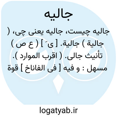 ( جالیة ) جالیة. [ ی َ ] ( ع ص ) تأنیث جالی. ( اقرب الموارد ). مسهل: و فیه [ فی الفاناخ ] قوة جالیة غسالة. || از خانمان رفتگان. ( منتهی الارب ) ( اقرب الموارد ). کسانی که جلاء وطن کرده باشند. مردمی که از اوطان خویش جلا اختیار کرده باشند. مهاجران. || ( اِ ) اهل ذمه. ( اقرب الموارد ). ذمیان بدانجهت که عمر ایشان را از جزیره عرب که سکونت داشتند بدر کرده. ( منتهی الارب ) ( ناظم الاطباء ). || جزیه ای که از ذمیان گرفته شود: یقال «استعمل فلان علی الجالیة»؛ ای اُقیم علی جبایة الجزیة. || جزیه بطور مطلق. ( اقرب الموارد ). گزیت. خراج. ج، جوال.