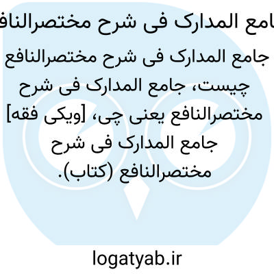 [ویکی فقه] جامع المدارک فی شرح مختصرالنافع (کتاب). کتاب« جامع المدارک» تألیف آیة الله سید احمد خوانساری از شروح معتبر و با ارزش« مختصر النافع » یا« النافع فی مختصر الشرایع » تألیف محقق حلی قده( م ۶۷۶ ق) است که در زمان حیات مؤلف انتشار یافته است.