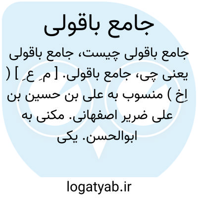 جامع باقولی. [ م ِ ع ِ ] ( اِخ ) منسوب به علی بن حسین بن علی ضریر اصفهانی. مکنی به ابوالحسن. یکی از بزرگان علماء نحو و ادب عربی است. برای ترجمه احوال او رجوع به ابوالحسن... شود.