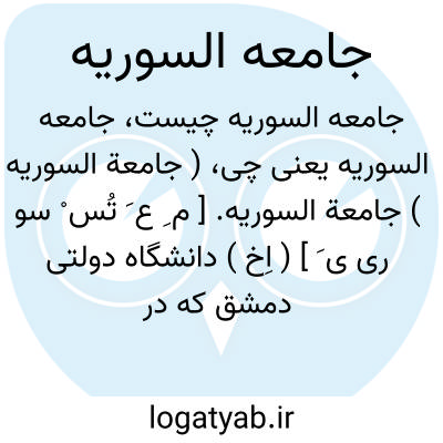 ( جامعة السوریه ) جامعة السوریه. [ م ِ ع َ تُس ْ سو ری ی َ ] ( اِخ ) دانشگاه دولتی دمشق که در 1924 م. تأسیس شده و شامل دانشکده ادبیات، حقوق، پزشکی و علوم است و دانشکده فنی حلب از شعب آن است.