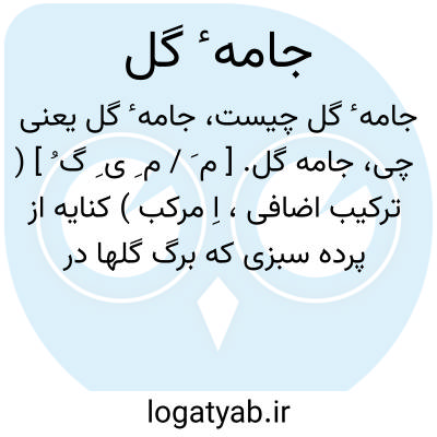 جامه گل. [ م َ / م ِ ی ِ گ ُ ] ( ترکیب اضافی، اِ مرکب ) کنایه از پرده سبزی که برگ گلها در آن میباشد. ( بهار عجم ) ( آنندراج ):