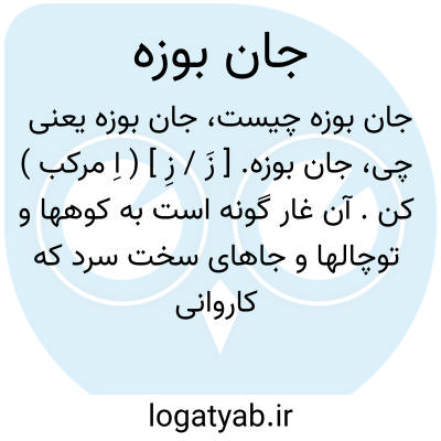 جان بوزه. [ زَ / زِ ] ( اِ مرکب ) کن. آن غار گونه است به کوهها و توچالها و جاهای سخت سرد که کاروانی بدانجای پناه برد. ( تاج العروس از نصر ).