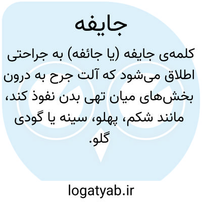 ( جایفة ) جایفة. [ ی ِ ف َ ] ( ع اِ ) جائفة. رجوع به جائفة شود.