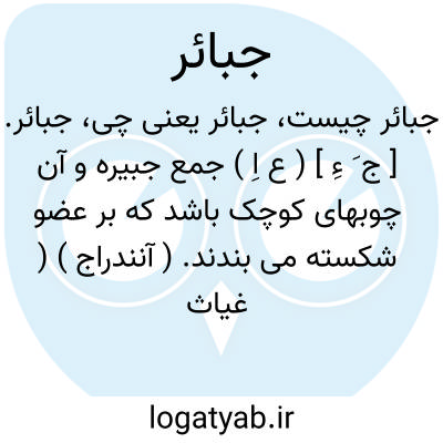 جبائر. [ ج َ ءِ ] ( ع اِ ) جمع جبیره و آن چوبهای کوچک باشد که بر عضو شکسته می بندند. ( آنندراج ) ( غیاث اللغات ). و جمع جباره. رجوع به جبیره و جباره شود.