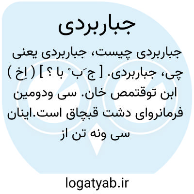 جباربردی. [ ج َب ْ با ؟ ] ( اِخ ) ابن توقتمص خان. سی ودومین فرمانروای دشت قبچاق است.اینان سی ونه تن از اولاد جوجی خان بودند که بترتیب تاسال نهصد و بیست و نه هجری بر آن سرزمین سلطنت میکردند. ( از حبیب السیر چ خیام ج 3 صص 75 - 76 ). بنقل معجم الانساب وی در 818 هَ.ق. به حکومت رسید. ( معجم الانساب ج 2 ص 366 ). در تاریخ طبقات سلاطین اسلام نام وی جبر بردی ضبط شده و حکومت وی را در حدود 818 هَ. ق. نوشته است. ( تاریخ طبقات سلاطین اسلام مقابل ص 206 ).