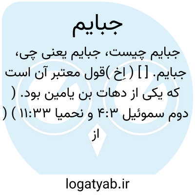 جبایم. [ ] ( اِخ )قول معتبر آن است که یکی از دهات بن یامین بود. ( دوم سموئیل 4:3 و نحمیا 11:33 ) ( از قاموس کتاب مقدس ).