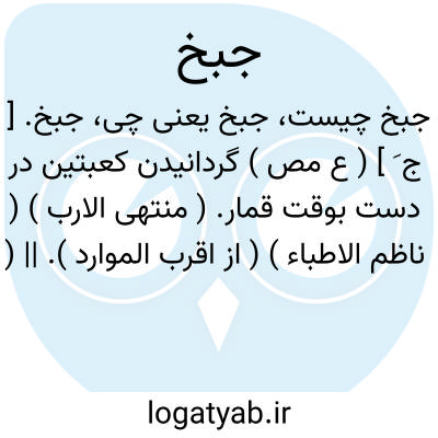 جبخ. [ ج َ ] ( ع مص ) گردانیدن کعبتین در دست بوقت قمار. ( منتهی الارب ) ( ناظم الاطباء ) ( از اقرب الموارد ). || ( اِ ) اجباخ. مکانهاست که درختهای خرما دارد. ( منتهی الارب ) ( اقرب الموارد ). و در شعر زیر بمعنی سنگها است: