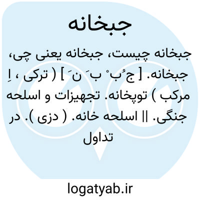 جبخانه. [ ج ُب ْ ب َ ن َ ] ( ترکی، اِ مرکب ) توپخانه. تجهیزات و اسلحه جنگی. || اسلحه خانه. ( دزی ). در تداول کنونی مردم آذربایجان، جبه خانه.
