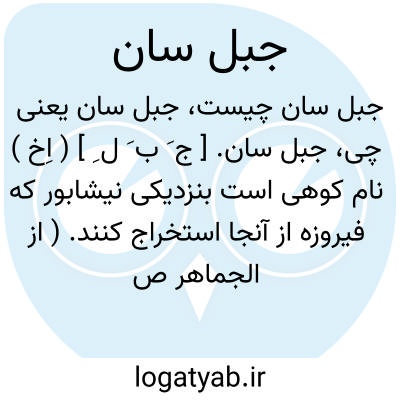 جبل سان. [ ج َ ب َ ل ِ ] ( اِخ ) نام کوهی است بنزدیکی نیشابور که فیروزه از آنجا استخراج کنند. ( از الجماهر ص 170 ).