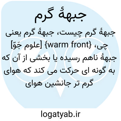 {warm front} [علوم جَوّ] جبهۀ ناهم رسیده یا بخشی از آن که به گونه ای حرکت می کند که هوای گرم تر جانشین هوای سردتر میشود