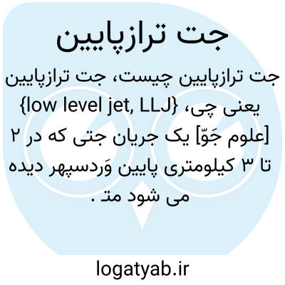 {low level jet, LLJ} [علوم جَوّ] یک جریان جتی که در 2 تا 3 کیلومتری پایین وَردسپهر دیده می شود متـ. جریان جتی ترازپایین low level jet stream