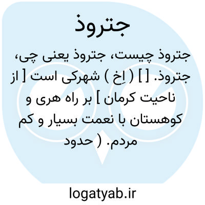 لغت نامه دهخدا جتروذ. [ ] ( اِخ ) شهرکی است [ از ناحیت کرمان ] بر راه هری و کوهستان با نعمت بسیار و کم مردم. ( حدود العالم ).