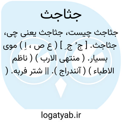 جثاجث. [ ج ُ ج ِ ] ( ع ص، اِ ) موی بسیار. ( منتهی الارب ) ( ناظم الاطباء ) ( آنندراج ). || شتر فربه. ( آنندراج ). بعیر جثاجث؛ شتر فربه. ( منتهی الارب ). شتر فربه و ستبر. || شعر جثاجث؛ موی بهم پیچیده. || نبت جثاجث؛ گیاه بهم پیچیده. ( ناظم الاطباء ).