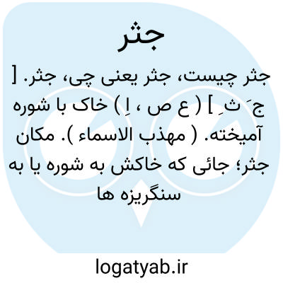 جثر. [ ج َ ث ِ ] ( ع ص، اِ ) خاک با شوره آمیخته. ( مهذب الاسماء ). مکان جثر؛ جائی که خاکش به شوره یا به سنگریزه ها آمیخته باشد. ( از منتهی الارب ). جائی که خاکش به شوره یا به سنگ ریزه ها آمیخته باشد. ( آنندراج ).