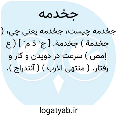 ( جخدمة ) جخدمة. [ ج َ دَ م َ ] ( ع اِمص ) سرعت در دویدن و کار و رفتار. ( منتهی الارب ) ( آنندراج ). شتاب در دویدن و راه رفتن. ( از ذیل اقرب الموارد ) ( قطر المحیط ). || عمل. کار. رفتار. ( ناظم الاطباء ). || ( مص ) تند دویدن. ( ناظم الاطباء ). جخدم الرجل جخدمة؛ تند دوید آن مرد. ( از ناظم الاطباء ).