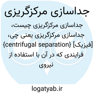 {centrifugal separation} [فیزیک] فرایندی که در آن با استفاده از نیروی مرکزگریز دو مایع را از یکدیگر یا ذره های جامد را از مایع یا گاز را از مایع جدا می کنند