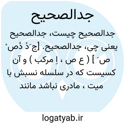 جدالصحیح. [ج َدْ دُص ْ ص َ ] ( ع ص، اِ مرکب ) و آن کسیست که در سلسله نسبش با میت، مادری نباشد مانند پدر پدر تا هر چه بالا رود. ( از تعریفات جرجانی ). رجوع به جد شود.