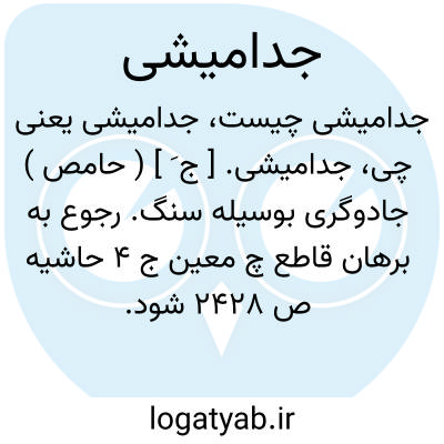 جدامیشی. [ ج َ ] ( حامص ) جادوگری بوسیله سنگ. رجوع به برهان قاطع چ معین ج 4 حاشیه ص 2428 شود.