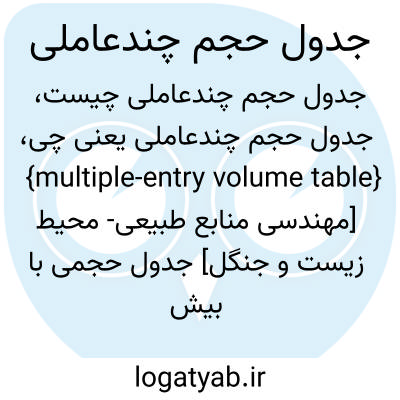 {multiple-entry volume table} [مهندسی منابع طبیعی- محیط زیست و جنگل] جدول حجمی با بیش از یک متغیر شامل قطر برابر سینه و محیط برابر سینه برای درختان و قطر میانی و انتهایی برای بینه ها
