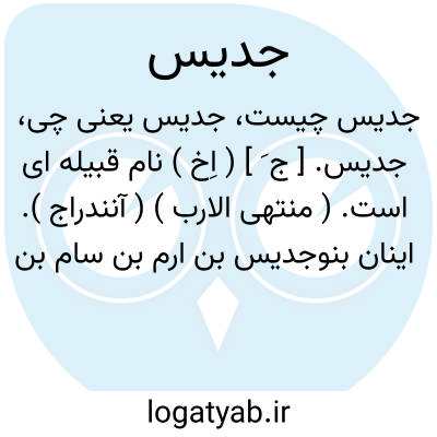 جدیس. [ ج َ ] ( اِخ ) نام قبیله ای است. ( منتهی الارب ) ( آنندراج ). اینان بنوجدیس بن ارم بن سام بن نوح باشند. طبری گوید: جدیس بن لاوذبن ارم بن سام بن نوح ( ع ) که در جوار منازل طسم جای داشتند و در جنگ با طسم هلاک شدند و ایشان قبیله ٔپنجم از اقوام عرب بائده اند. ( از صبح الاعشی ج 1 ص 314 ). زرکلی در الاعلام چنین آرد: جدیس بن ارم جد قدیم جاهلی عرب عاربه است. و منازل آنان در یمامه یا بحرین بوده و جنگ مشهوری با طسم داشتند که گویند بنابودی هردو قبیله انجامید. ( از الاعلام زرکلی ج 1 ص 178 ). و در تاریخ اسلام چنین آمده: از طسم و جدیس نیز در اکتشافات جدید نامی نیست هر چند در کتابهای جغرافی ابنیه وآثاری از آنها نام برده اند. روایات حاکی است که این دو قوم هر دو بیمامه بودند و سیادت بدست طسم بود و بر اثر ظلم پادشاه طسم، قوم جدیس خروج کردند و طمسیها را از میان برداشتند و بعد خودشان هم بدست پادشاه یمن منقرض شدند. ( از تاریخ اسلام فیاض ص 14 ). از مجموع کتاب های فوق سه قول بدست می آید: 1 - هلاکت قوم جدیس بدست طسم. 2 - هلاکت هر دو قوم در جنگ باهم. 3 - هلاکت طسم بدست قوم جدیس. و هلاکت جدیس بدست پادشاه یمن.