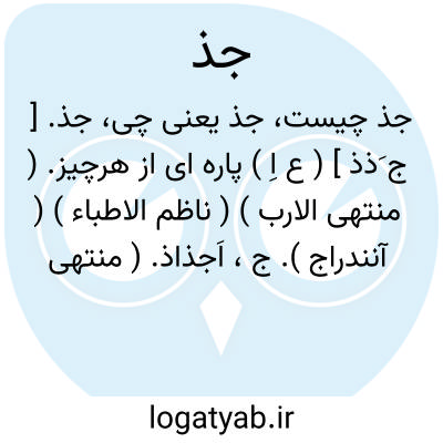 جذ. [ ج َذذ ] ( ع اِ ) پاره ای از هرچیز. ( منتهی الارب ) ( ناظم الاطباء ) ( آنندراج ). ج، اَجذاذ. ( منتهی الارب ) ( ناظم الاطباء ). || ( مص )شتابی کردن. ( منتهی الارب ) ( ناظم الاطباء ). بسرعت رفتن. ( آنندراج ). شتاب کردن. ( اقرب الموارد ) ( قطر المحیط ). در امثال سائره عرب در باره کسی که بدروغ سوگند یاد کند چنین آمده: جذها جذَّالعْیرِ الصلیانة؛ اراد انه اسرع الیها. ( از اقرب الموارد ). || از بیخ و بن برکندن. ( منتهی الارب ) ( ناظم الاطباء ). ازبیخ بریدن. ( آنندراج ). از ریشه کندن و بریدن. ( از قطر المحیط ) ( اقرب الموارد ). و منه الحدیث انه قال یوم حنین: جُذّوهم جَذّا. ( از اقرب الموارد ). || پاره کردن. ( منتهی الارب ). بریدن. ( از ناظم الاطباء ) ( آنندراج ) ( ترجمان القرآن عادل ) ( المصادر زوزنی ) ( تاج المصادر بیهقی ). || شکستن. ( منتهی الارب ) ( آنندراج ) ( ناظم الاطباء ) ( از قطر المحیط ) ( اقرب الموارد ). || چیدن. ( از ناظم الاطباء ).