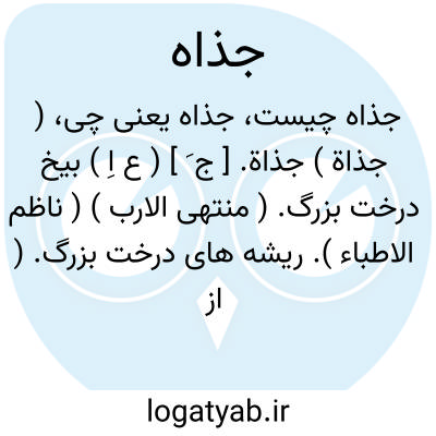 ( جذاة ) جذاة. [ ج َ ] ( ع اِ ) بیخ درخت بزرگ. ( منتهی الارب ) ( ناظم الاطباء ). ریشه های درخت بزرگ. ( از اقرب الموارد ). ج، جِذاء. ( منتهی الارب ) ( اقرب الموارد ). || پاره ستبر از چوب. ( منتهی الارب ) ( ناظم الاطباء ). ج، جِذاء. ( منتهی الارب ).