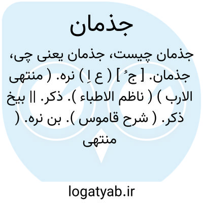 جذمان. [ ج ُ ] ( ع اِ ) نره. ( منتهی الارب ) ( ناظم الاطباء ). ذکر. || بیخ ذکر. ( شرح قاموس ). بن نره. ( منتهی الارب ) ( ناظم الاطباء ).