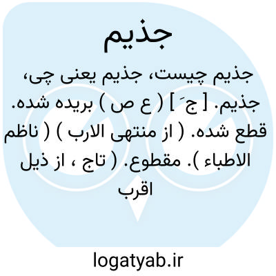 جذیم. [ ج َ ] ( ع ص ) بریده شده. قطع شده. ( از منتهی الارب ) ( ناظم الاطباء ). مقطوع. ( تاج، از ذیل اقرب الموارد ).