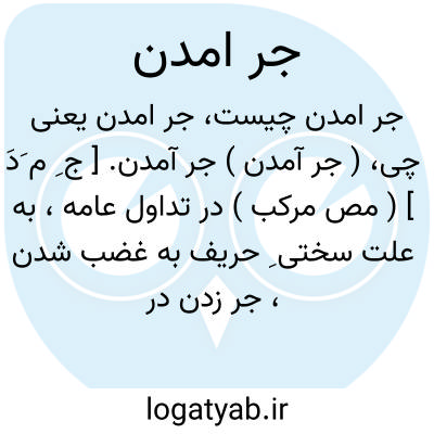 لغت نامه دهخدا ( جر آمدن ) جر آمدن. [ ج ِ م َدَ ] ( مص مرکب ) در تداول عامه، به علت سختی ِ حریف به غضب شدن، جر زدن در بازی قمار. ( یادداشت مؤلف ).