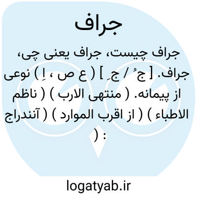 جراف. [ ج ِ ] ( ع اِ ) نوعی پیمانه. ( منتهی الارب ) ( ناظم الاطباء ) ( اقرب الموارد ). جُراف. ( منتهی الارب ) ( اقرب الموارد ).