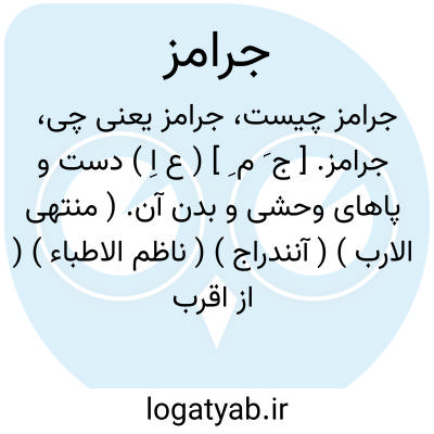 جرامز. [ ج َ م ِ ] ( ع اِ ) دست و پاهای وحشی و بدن آن. ( منتهی الارب ) ( آنندراج ) ( ناظم الاطباء ) ( از اقرب الموارد ). یقال: ضم الثور جرامزه؛ ای قوائمه. ( اقرب الموارد ). || تن مردم. ( منتهی الارب ) ( از ناظم الاطباء ). بدن و تن مردم. ( آنندراج ) ( اقرب الموارد ): ضم فلان الیه جرامزه؛ اذا رفع ما انتشر من ثیابه ثم مضی. ( اقرب الموارد ).