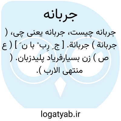 لغت نامه دهخدا ( جربانة ) جربانة. [ ج ِ رِب ْ با ن َ ] ( ع ص ) زن بسیارفریاد پلیدزبان. ( منتهی الارب ).