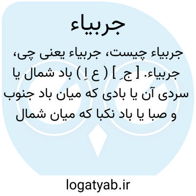 جربیاء. [ ج ِ ] ( ع اِ ) باد شمال یا سردی آن یا بادی که میان باد جنوب و صبا یا باد نکبا که میان شمال و دبور وزد. ( منتهی الارب ) ( آنندراج ). باد که میان باد شمال ودبور جهد. ( مهذب الاسماء ). شمال سرد. ( اقرب الموارد ). و عبارت «سئلت ابنة الخس مااشدّ البرد فقالت شمال جربیاء تحت غب سماء» به همین معنی است. ( از اقرب الموارد ). || مرد ضعیف. ( منتهی الارب ) ( ناظم الاطباء ) ( آنندراج ). || نام زمین هفتم چنانکه عربیاء نام آسمان هفتم است. ( از اقرب الموارد ).