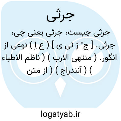 جرثی. [ ج ُ رَ ثی ی ] ( ع اِ ) نوعی از انگور. ( منتهی الارب ) ( ناظم الاطباء ) ( آنندراج ) ( از متن اللغة ) ( قاموس بنقل از ذیل اقرب الموارد ).