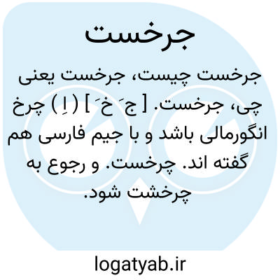 لغت نامه دهخدا جرخست. [ ج َ خ َ ] ( اِ ) چرخ انگورمالی باشد و با جیم فارسی هم گفته اند. چرخست. و رجوع به چرخشت شود. چرخ انگورمالی. جرخست. ( ناظم الاطباء ). رجوع به چرخشت شود.