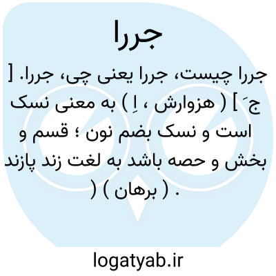 جررا. [ ج َ ] ( هزوارش، اِ ) به معنی نسک است و نسک بضم نون؛ قسم و بخش و حصه باشد به لغت زند پازند. ( برهان ) ( ازانجمن آرا ) ( از آنندراج ). || به معنی سنگ هم آمده است که به عربی حجر باشد. ( برهان ). سنگ سخت ( لغت محلی شوشتر نسخه خطی ). این کلمه هزوارش جاررا است که بغلط «داررا» نیزخوانده و نوشته اند و مأخوذ از کلدانی گاررا به معنی سنگ قیمتی و بپارسی به معنی سنگ است. و مؤلف سنگ را «نسک » خوانده و معنی کرده است اما معنی دوم آن درست است. ( از حاشیه برهان چ معین ). و رجوع بکلمه نسک در برهان چ معین شود.