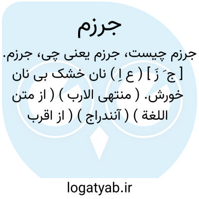 جرزم. [ ج َ زَ ] ( ع اِ ) نان خشک بی نان خورش. ( منتهی الارب ) ( از متن اللغة ) ( آنندراج ) ( از اقرب الموارد ). جِرزِم. ( منتهی الارب ) ( آنندراج ) ( اقرب الموارد ).