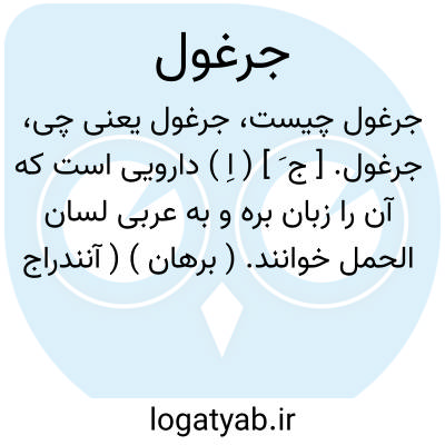 جرغول. [ ج َ ] ( اِ ) دارویی است که آن را زبان بره و به عربی لسان الحمل خوانند. ( برهان ) ( آنندراج ). به فارسی اسم لسان الحمل است. ( تحفه حکیم مؤمن ). گیاهی دارویی که بارتنگ و بتازی لسان الحمل گویند. جَرغون. ( ناظم الاطباء ). چرغول. ( برهان ). دارویی است که آن را زبان بره گویند. ( یادداشت مؤلف ).