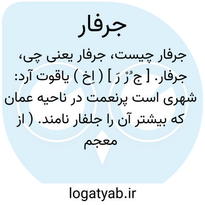 جرفار. [ ج ُرْ رَ ] ( اِخ ) یاقوت آرد: شهری است پرنعمت در ناحیه عمان که بیشتر آن را جلفار نامند. ( از معجم البلدان ).