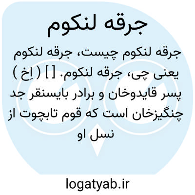 جرقه لنکوم. [ ] ( اِخ ) پسر قایدوخان و برادر بایسنقر جد چنگیزخان است که قوم تابچوت از نسل او پیدا شدند. ( از حبیب السیر چ خیام ج 3 ص 13 ).