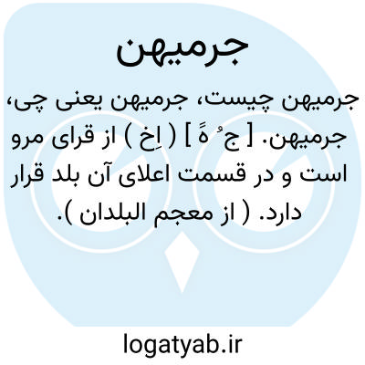 جرمیهن. [ ج ُ هََ ] ( اِخ ) از قرای مرو است و در قسمت اعلای آن بلد قرار دارد. ( از معجم البلدان ).