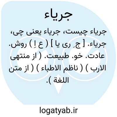 جریاء. [ ج ِ ری یا ] ( ع اِ ) روش. عادت. خو. طبیعت. ( از منتهی الارب ) ( ناظم الاطباء ) ( از متن اللغة ). اِجریاء. اِجریّا. ( از متن اللغة ) ( از منتهی الارب ).
