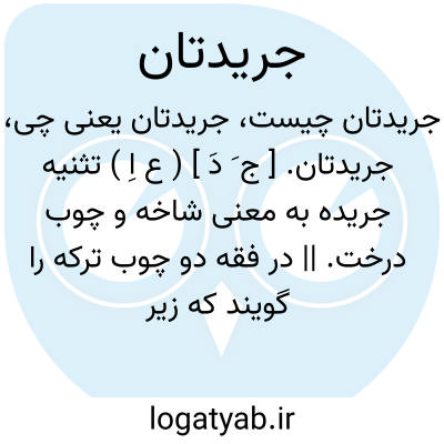 جریدتان. [ ج َ دَ ] ( ع اِ ) تثنیه جریده به معنی شاخه و چوب درخت. || در فقه دو چوب ترکه را گویند که زیر بغل میت نهند. و مستحب است که دو چوب مزبور از درخت خرما و اگر نباشد از درخت سدر وگرنه از درخت انار یا هر درخت که تازه و تر باشد. ( از شرایع در باب احکام دفن میت از کتاب طهارت ).