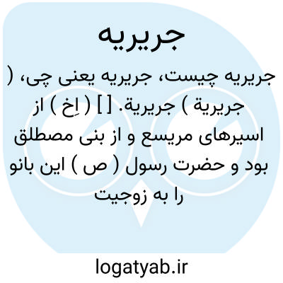 ( جریریة ) جریریة. [ ] ( اِخ ) از اسیرهای مریسع و از بنی مصطلق بود و حضرت رسول ( ص ) این بانو را به زوجیت اختیار کرد.