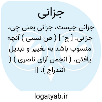 جزانی. [ ج َ ] ( ص نسبی ) آنچه منسوب باشد به تغییر و تبدیل یافتن. ( انجمن آرای ناصری ) ( آنندراج ). || تغییرپذیر و قابل تغییر و تبدیل. ( ناظم الاطباء ).
